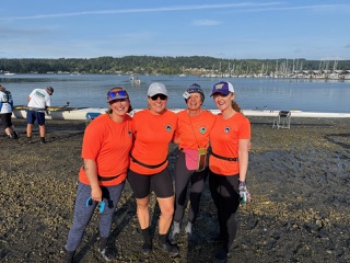 Our heartfelt thanks to the tireless event organizer Mac Noyes and co-sponsors KRA, Bainbridge Island Rowing and Clam Island Rowing. And of course thanks to our own crews behind purchasing the trailer (Ron and Dave Winters); rehabbing it (Ken Shelton); pulling it to Poulsbo and back (Ted and Kim); organizing the crews (Peggy); keeping everything organized (Sally) and all the rowers' dedication to getting the travel job requirements done. They looked like race car pit crews while in action, swiftly carrying boats, gear, rigging, derigging and making it all happen.