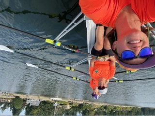 The rest of the Rats planned to race in the sculling heat in our quads. The top times in the quad class were close, with the quad Rex Clothier (Bainbridge?) winning the class with a 20:19. Glen Eppick coxing Ted Shoulberg and new members Dylan and Andrew Rauch came in second in its class with 20:51, taking the club’s top spot over the second RIRSC quad by just 15 seconds. That boat, coxed by Bill Mahoney with Peggy Myre, Paul Carter and Kathy Woods-Smith, came in third in its class with 21:06. Next in line among our club boats was cox Sally Giesler flying the wooden boat flag with Kim Matthews, Janet Palmer and Karen Richards. They had a 21:49 to get 5th place in the class. Following them were Mari Friend's quad with Meredith Milholland, Kari Griffin-Harte and another new member, Angela Dunham. That boat overcame rudder trouble to still clock in at 24:11.